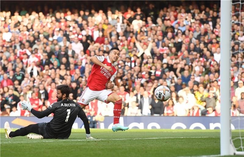 و لم يجد حارس ليفربول أيسون بيكر، صعوبة في التصدي لمحاولة جيسوس إثر عرضية من الظهير الأيسر تاكيهيرو تومياسو في الدقيقة 27.