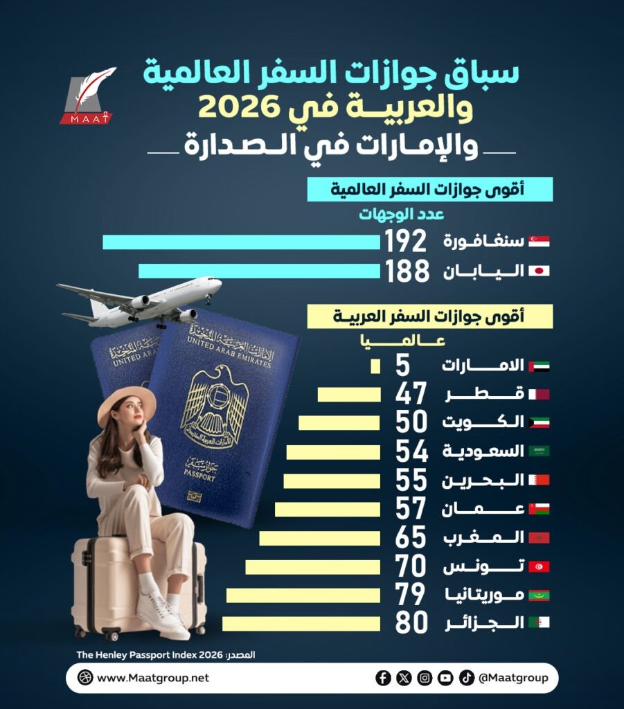 يشهد عام 2026 اشتداد المنافسة العالمية على صدارة مؤشر قوة جوازات السفر، الذي يقيس عدد الوجهات التي يمكن لمواطني الدول دخولها دون تأشيرة مسبقة أو بتأشيرة عند الوصول. ولم يعد المؤشر مجرد أداة لقياس سهولة السفر، بل تحوّل إلى مقياس مباشر للقوة الناعمة، يعكس عمق العلاقات الدبلوماسية، والاستقرار السياسي، وجاذبية الاقتصاد الوطني.