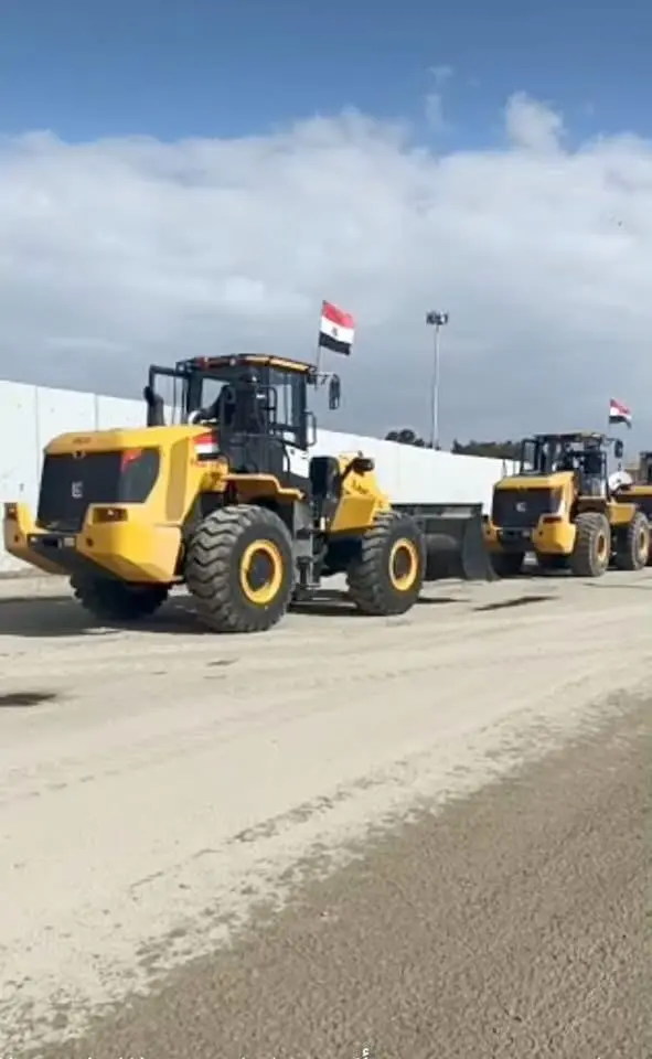 وسط استمرار المفاوضات، تستعد أكبر قافلة مصرية من اللوادر ومعدات إعادة الإعمار لدخول قطاع غزة من أمام معبر رفح.