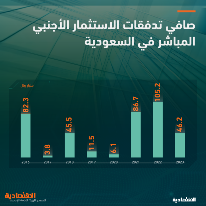 %16 ارتفاع في قيمة تدفقات الاستثمار الأجنبي المباشر في المملكة خلال الربع الأخير لعام 2023م