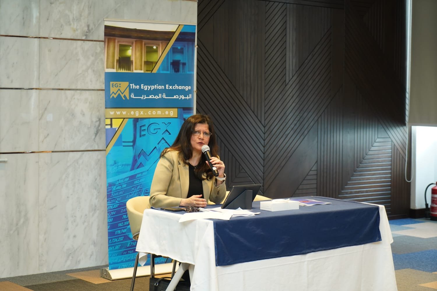 عقد السيد/ أحمد الشيخ – رئيس البورصة المصرية، والسيدة/ هبة الصيرفي – نائب رئيس البورصة المصرية، مؤتمراً صحفياً استعرضا فيه أهم التطورات التي شهدها سوق الأوراق المالية