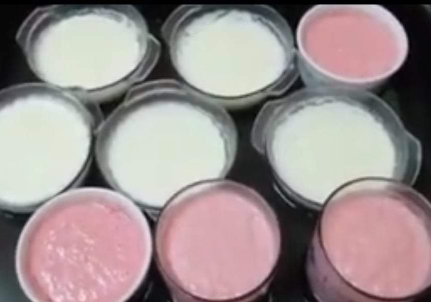 نسخن الفرن لمدة ٥ دقائق ثم نطفئه و نضع الصينيه به لمدة ٨ ساعات ثم نخرجه من الفرن و نضع الاكواب بالثلاجة حتى تبرد و تقدم للطريقة كاملة https://youtu.be/7mXAcTdnsnE