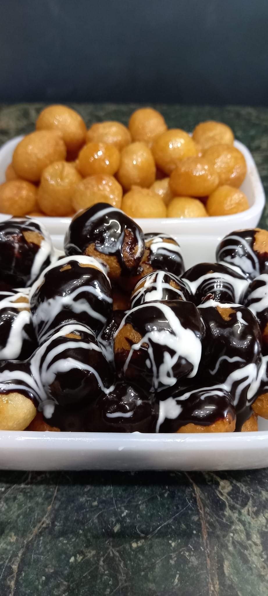ونقدمها ساخنه بالشربات او صوص الشيكولاته او سكر بودر