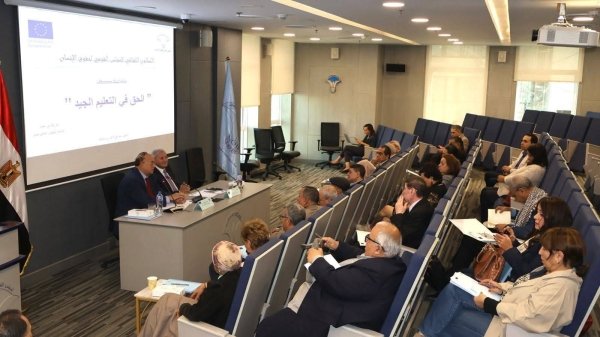 نظّم المجلس القومي لحقوق الإنسان حلقة نقاشية موسّعة لمناقشة ورقة سياسات حول «الحق في التعليم الجيد»، وذلك بالتعاون مع الاتحاد الأوروبي. وشهدت الفعالية مشاركة نخبة من الخبراء والمتخصصين في مجالي التعليم وحقوق الإنسان، إلى جانب أكاديميين وباحثين في السياسات العامة. جاءت الحلقة في إطار جهود دعم تطوير المنظومة التعليمية في مصر، وفتح حوار علمي حول سبل تحسين جودة التعليم وضمان إتاحته بشكل عادل لجميع الفئات.