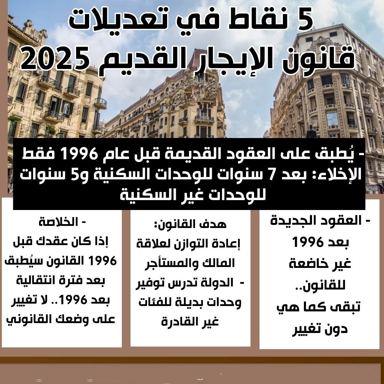 – حذرت منظمات حقوقية من زيادة نزاعات “الإخلاء الانتقامي”، حيث يسارع بعض الملاك لتلفيق تهم “الإغلاق” أو “الوحدة البديلة” للتخلص من مستأجرين دفعوا إيجارات رمزية لعقود .