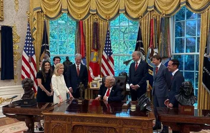 ترامب يُتوَّج بـ«مهندس السلام»في حفل أقيم داخل المكتب البيضاوي بالبيت الأبيض، حصل الرئيس الأمريكي السابق دونالد ترامب على جائزة «مهندس السلام» من مؤسسة ريتشارد نيكسون، تقديرًا لمساهمته في دعم جهود إحلال السلام العالمي، بحسب ما نقلته شبكة CBS NEWS.