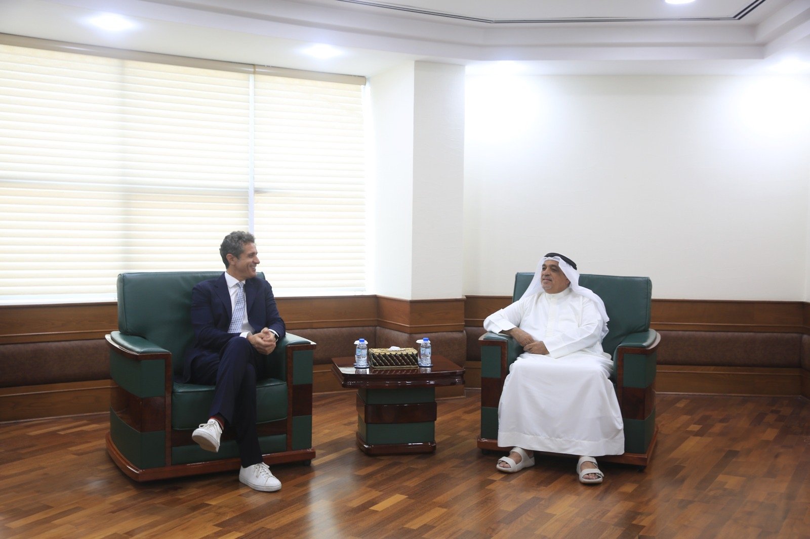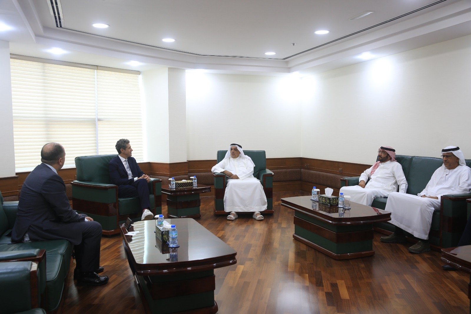 استقبل سعادة محمد مصبح النعيمي رئيس غرفة تجارة رأس الخيمة ، الدكتور لويجي فيبو، رئيس مجلس بلدية كييتي بإيطاليا ومرافقه ، وذلك بحضور سعادة يوسف اسماعيل رئيس اللجنة العليا لمؤسسة سعود بن صقر لتنمية مشاريع الشباب ، والدكتور أحمد الشميلي مدير عام الغرفة بالوكالة ، واستعرض اللقاء أطر التعاون في عدد من المجالات والقطاعات بمشاركة شريك ثالث هيئة الترويج الوطنية لإيطاليا ، وإمكانية استقطاب شركات ومؤسسات ايطالية لمعارض ينظمها مركز رأس الخيمة للمعارض ” اكسبو ” ، بالتعاون مع مؤسسة سعود بن صقر لتنمية مشاريع الشباب .