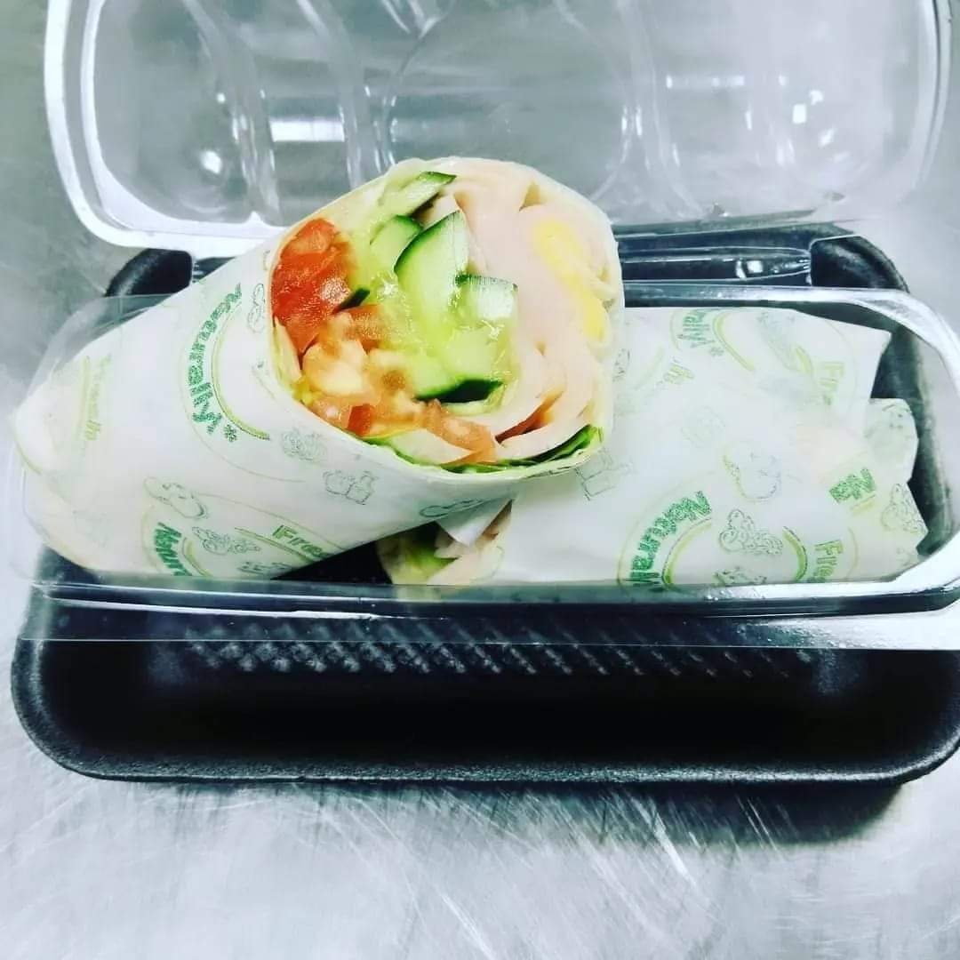 نحضر خبز التورتيلا ونضع به معلقة من المايونيز