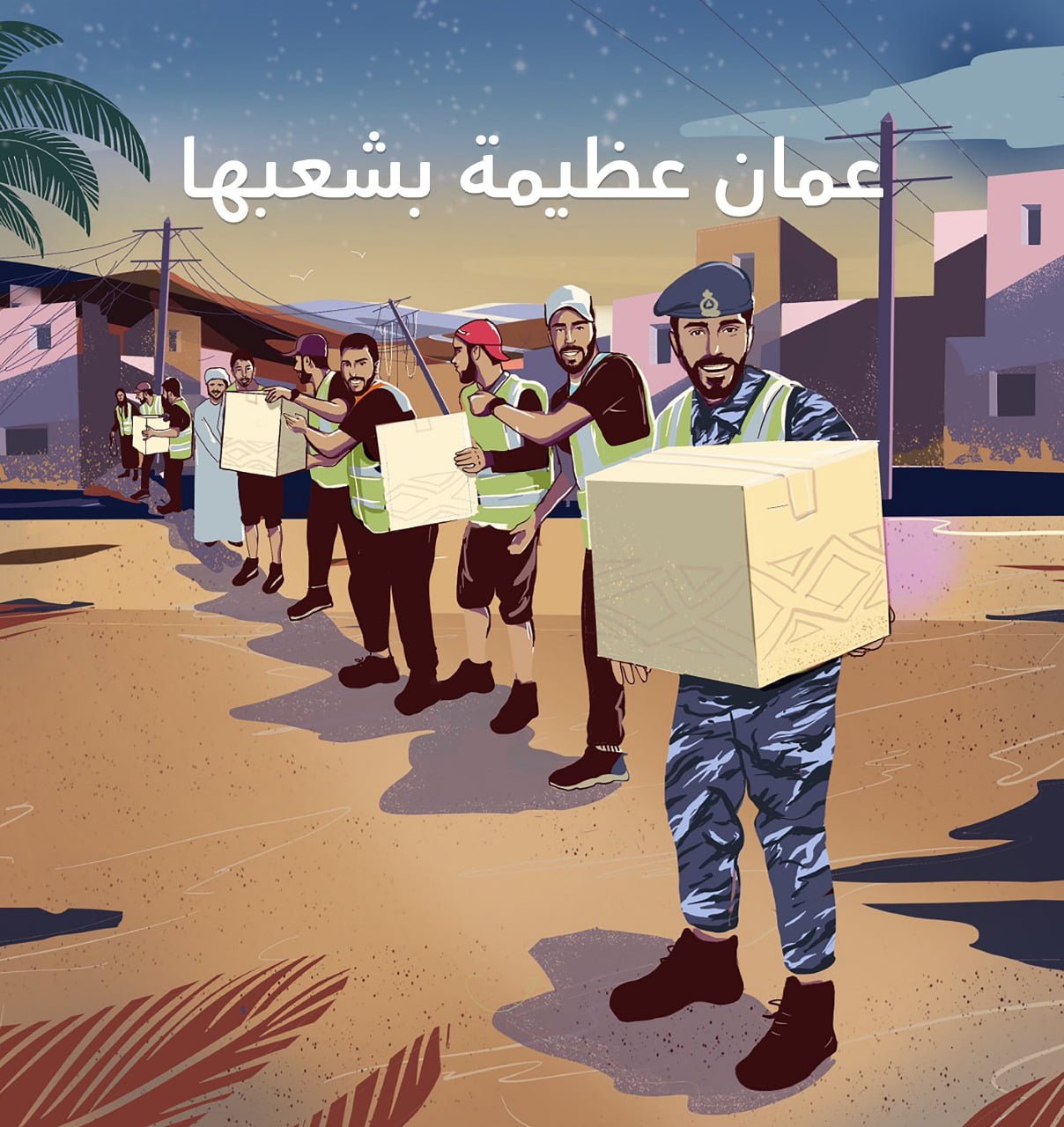 يتوجهون من أقصى شمال السلطنة إلى أقصى جنوبها إلى الولايات التي تضررت،