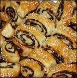 ثم تحشو وتغطي بالسمسم وبياض البيض وتدخل الفرن على درجة حرارة 190 فى الرف الأوسط لمدة ثلث ساعة