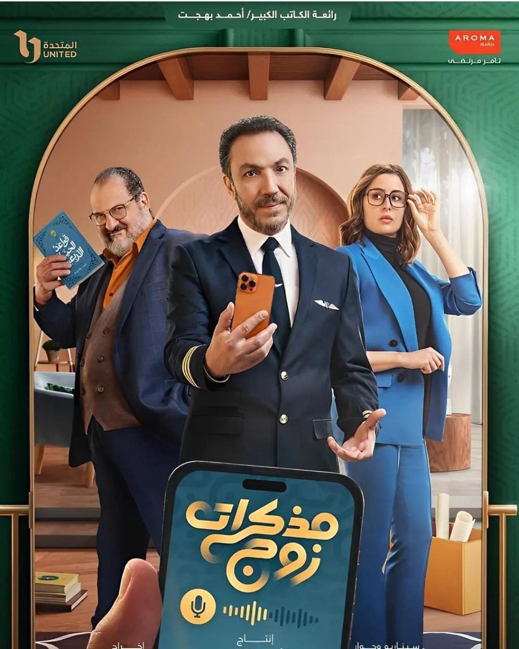 و ظهر في البوستر الدعائي لمسلسل “مذكرات زوج” النجم طارق لطفي يرتدي بدلة طيار، بصحبة النجم خالد الصاوي، وكان يحمل كتاب بعنوان قواعد العشق الأربعين، و ظهرت معهم عائشة بن احمد.