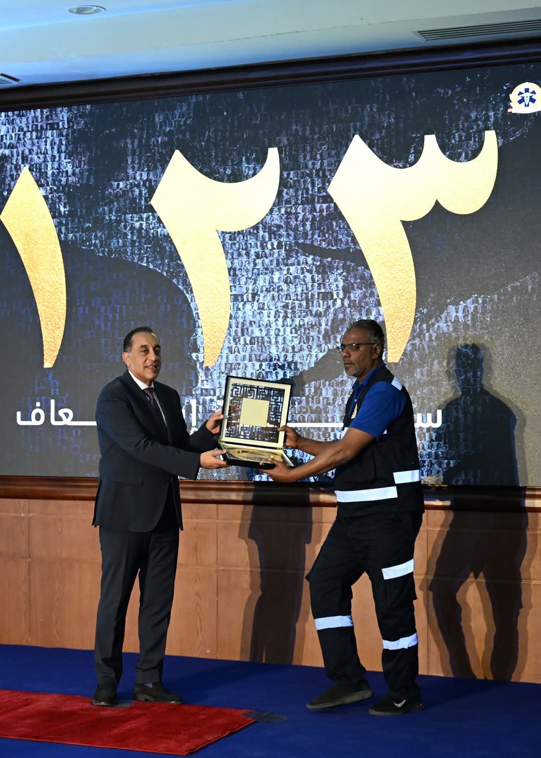 شارك الدكتور مصطفى مدبولي، رئيس مجلس الوزراء، في احتفالية مرور 123 عاما على إطلاق خدمة الإسعاف في مصر. أقيمت الفعالية بمقر هيئة الإسعاف الجديد في مدينة السادس من أكتوبر. حضرها الدكتور خالد عبد الغفار، وزير الصحة، والدكتور عمرو رشيد، رئيس الهيئة، وعدد من الوزراء والمحافظين والسفراء.