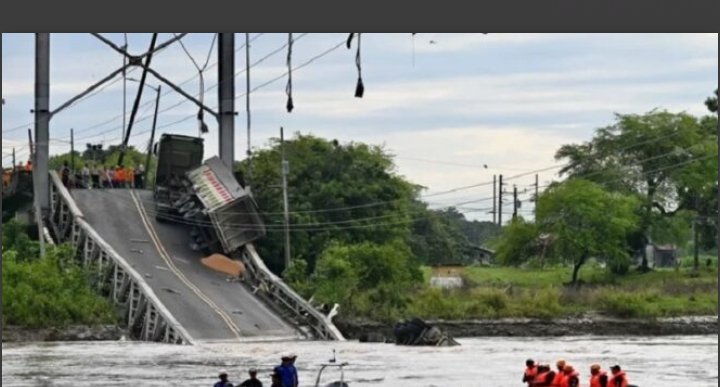 ووقع الحادث الأربعاء في بلدة داولي الريفية الصغيرة في جنوب غرب البلاد فوق نهر ماغرو فيما كانت تسير على الجسر خمس شاحنات ودراجتان ناريتان.