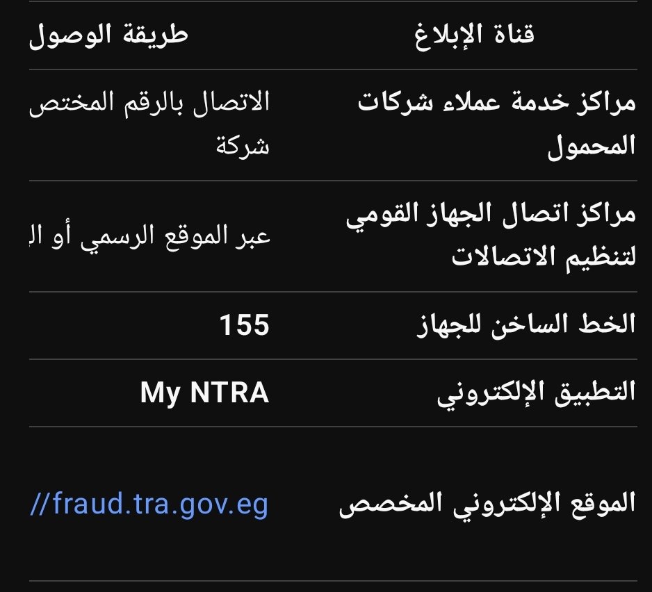 – الموقع المخصص لذلك fraud.tra.gov.eg.