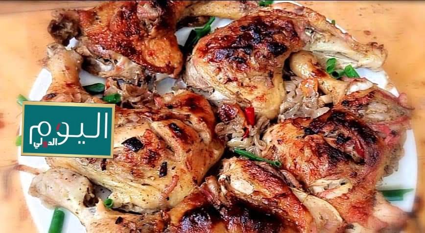 ونقوم بتتبيلها بالخلطه وحشو الفتحات وتحت الجلد باقي خلطة البصل توضع في صينيه ووضع الاوراك فوقها وتركها فترة تتبل لا نحتاج لاضافة مادة دهنيه لان الاوراك بها نسبه عاليه من الدهون