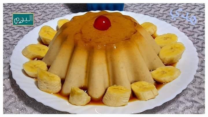 و يضاف الكراميل الجاهز ثم يصب الخليط السابق و يترك حتى يبرد تماما ثم يغطي و يدخل الثلاجة لمدة ٤ ساعات ثم يقلب في طبق التقديم و يزين